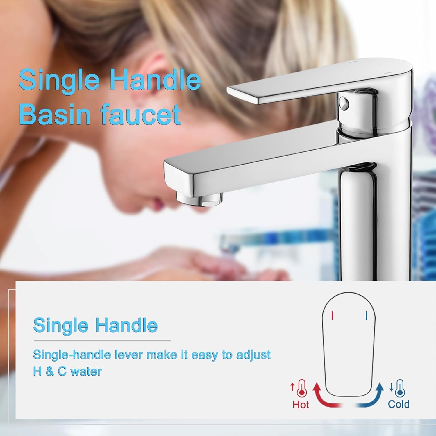 The ergonomic single-lever design allows for precise adjustment of both water temperature and pressure with one hand. Clearly marked for hot and cold water, it provides a user-friendly experience for all ages.